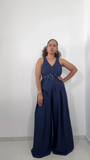 Découvrez l'alliance parfaite entre élégance et confort avec ce gilet et pantalon palazzo "Wlon owazonwlolié" en bleu. Conçu pour sublimer votre silhouette, cet ensemble chic se porte facilement au quotidien ou lors d'occasions spéciales. La coupe fluide du palazzo assure une grande liberté de mouvement tandis que le gilet apporte une touche structurée et raffinée à votre tenue. Un choix idéal pour une allure moderne et sophistiquée sans effort.