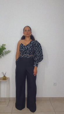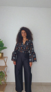Top asymétrique stretch et pantalon en bogolan "Wlon oplaninè"
