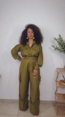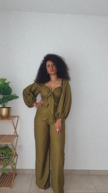 Chemise et pantalon ample kaki "Djemba lokou popouè"