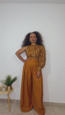 Top asymétrique stretch et pantalon "Bincéwlon" Camel
