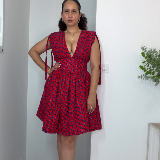 Robe "Wlon okatchi" en pagne, conçue avec une silhouette évasée qui valorise votre allure. Le maintien de poitrine intégré assure un soutien confortable. Cette pièce incontournable allie authenticité et élégance pour un style affirmé.